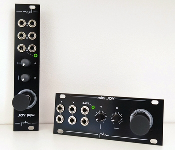 The JOY‘s little brother, this module is a two-dimensional voltage generator, controlled via a dual-axis joystick. Pressing the joystick generates a GATE signal.